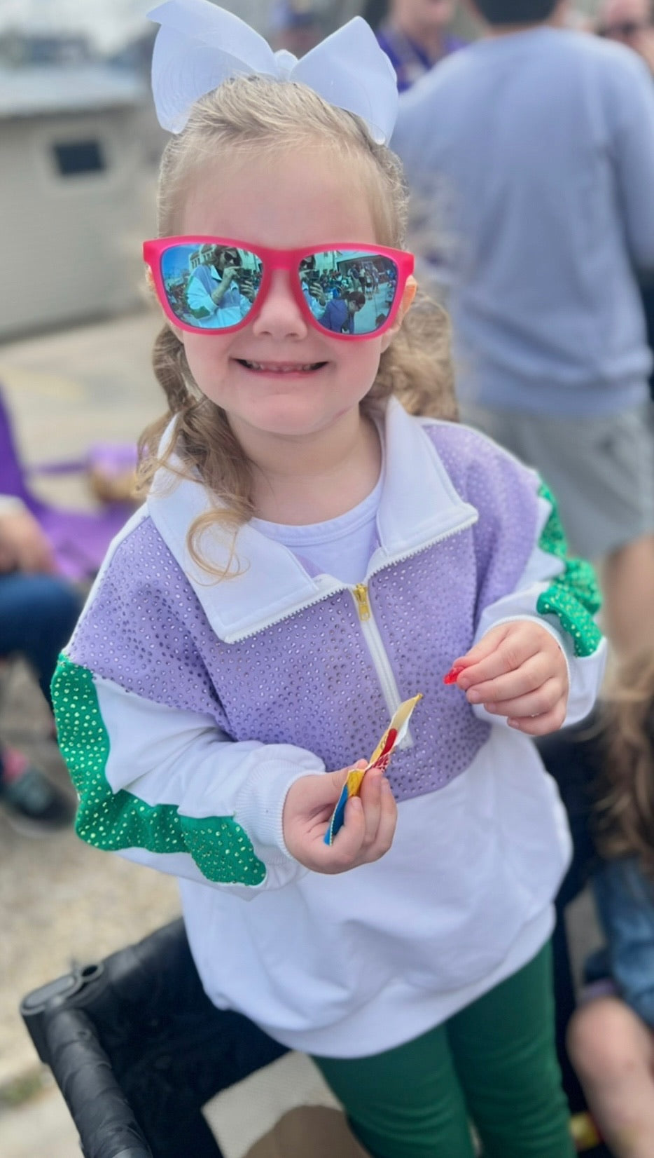 Girls Mardi Gras Bedazzled Zip Up Pullover